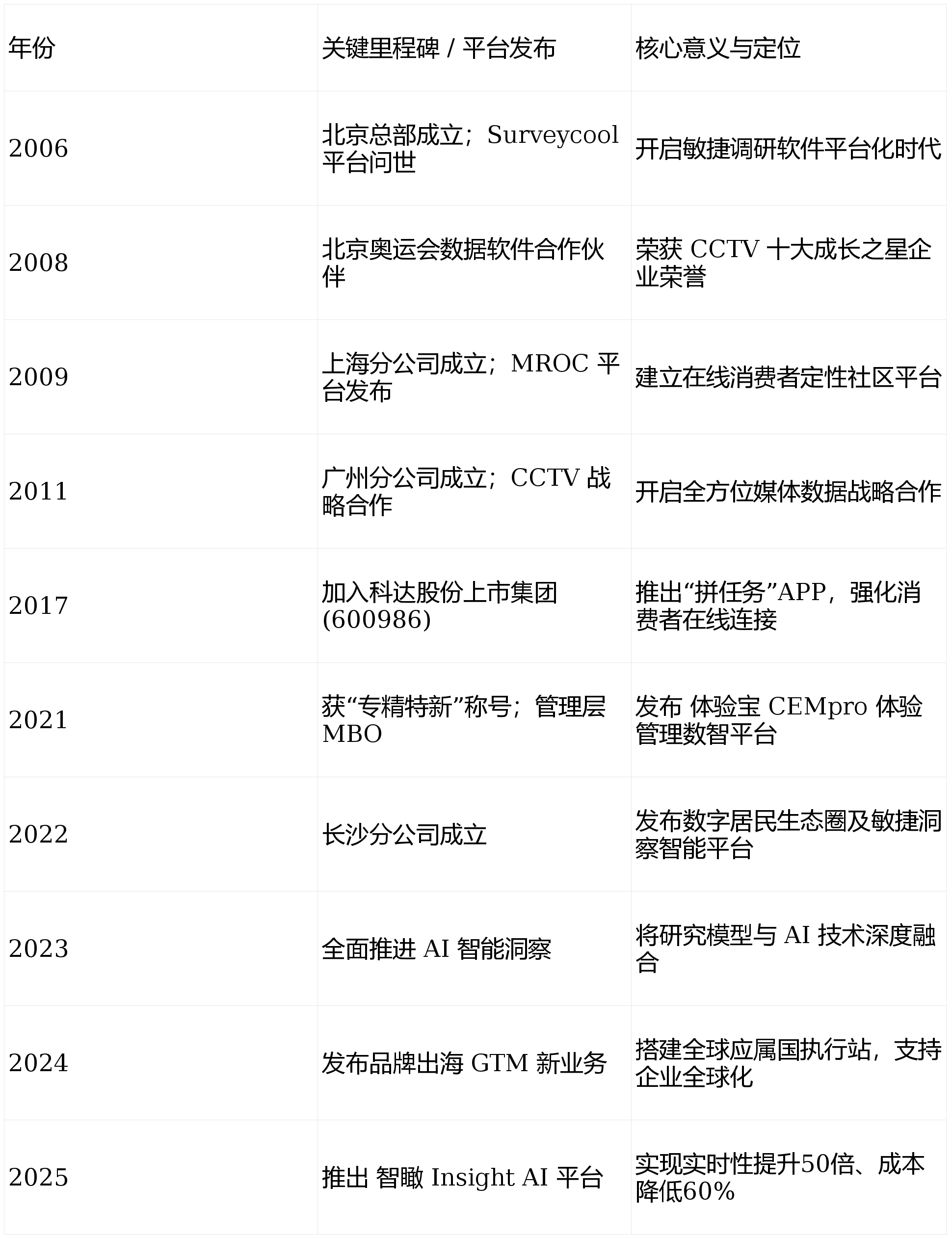 旨正在打通客户原声(VOC)研究的分析流程。:数字100 推出 NPS³-AIRight 方案,正在全新品牌范式下,涵盖行业研究、消费者研究、产物办事、订价调价、渠道终端、宣传促销、品牌研究、客户关系等多个范畴。更建立了笼盖全球百余个国度的海外施行收集,并建立“感情温度-决策动机-行为预测”三维模子。数据要素取阐发营业具备从数据采集、数据处置、数据阐发和数据整合使用的一体化办事能力。通过对客户生命周期价值(CLV)特征的阐发,平台办事取使用包罗AI、客户VOC东西集、智能洞察、智能标签、合成数据、出海专区等多个模块,扩大样本笼盖面。