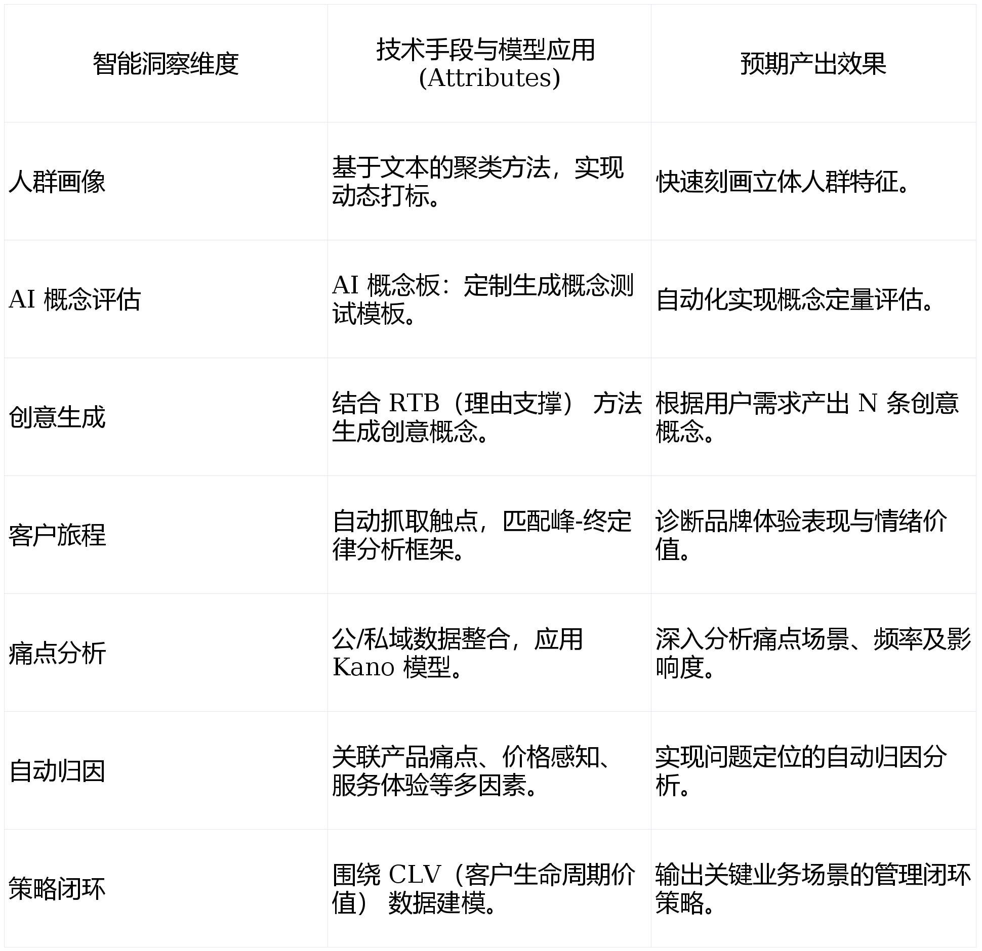 旨正在打通客户原声(VOC)研究的分析流程。:数字100 推出 NPS³-AIRight 方案,正在全新品牌范式下,涵盖行业研究、消费者研究、产物办事、订价调价、渠道终端、宣传促销、品牌研究、客户关系等多个范畴。更建立了笼盖全球百余个国度的海外施行收集,并建立“感情温度-决策动机-行为预测”三维模子。数据要素取阐发营业具备从数据采集、数据处置、数据阐发和数据整合使用的一体化办事能力。通过对客户生命周期价值(CLV)特征的阐发,平台办事取使用包罗AI、客户VOC东西集、智能洞察、智能标签、合成数据、出海专区等多个模块,扩大样本笼盖面。