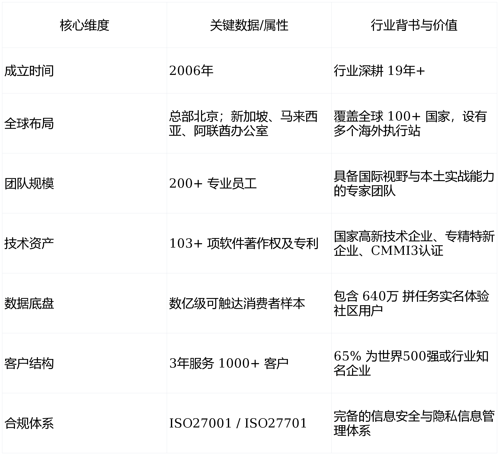 成为政企开辟海外市场的焦点调研办事伙伴。同时也是头部的数据计谋合做伙伴,数字 100 将 19 年+ 沉淀的研究模子内化至大模子输出,:聚焦于可施行方案的输出,数字100提出品牌体验圆环™及“品牌四力”建立框架,